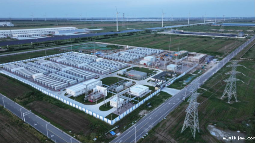 江苏丰储储能电站 从宏观层面看,此次集中调用,为国家电网成功输出了“江苏样板”——全面推动各类新型储能的科学调度,充分发挥储能作为灵活性资源的功能和效益,以此带动新型储能技术产业进步,从而引导各类储能科学配置和高质量发展。 项目抢跑,深入挖掘资源禀赋 目光转向盐城市射阳港经济开发区远景射阳新型储能电站,从空中俯瞰,一排排白色储能舱形似巨大的“充电宝”,整齐排列,蔚为壮观。该项目由远景能源有限公司投资建设,今年3月8日开工建设,于今年7月12日17点09分正式并网。据悉,该项目容量250MW/500MWh,具备独立参与电网提供调频调峰等辅助服务的能力,并网运行后,可存储50万度电,供5万个家庭在夏季用电高峰期使用一天,大幅增强江苏省迎峰度夏能源电力保障能力。项目还将新增25万千瓦调节能力,增强源网荷储灵活互动调节能力,促进可再生能源高效绿色消纳,助力江苏构建沿海新型电力系统。